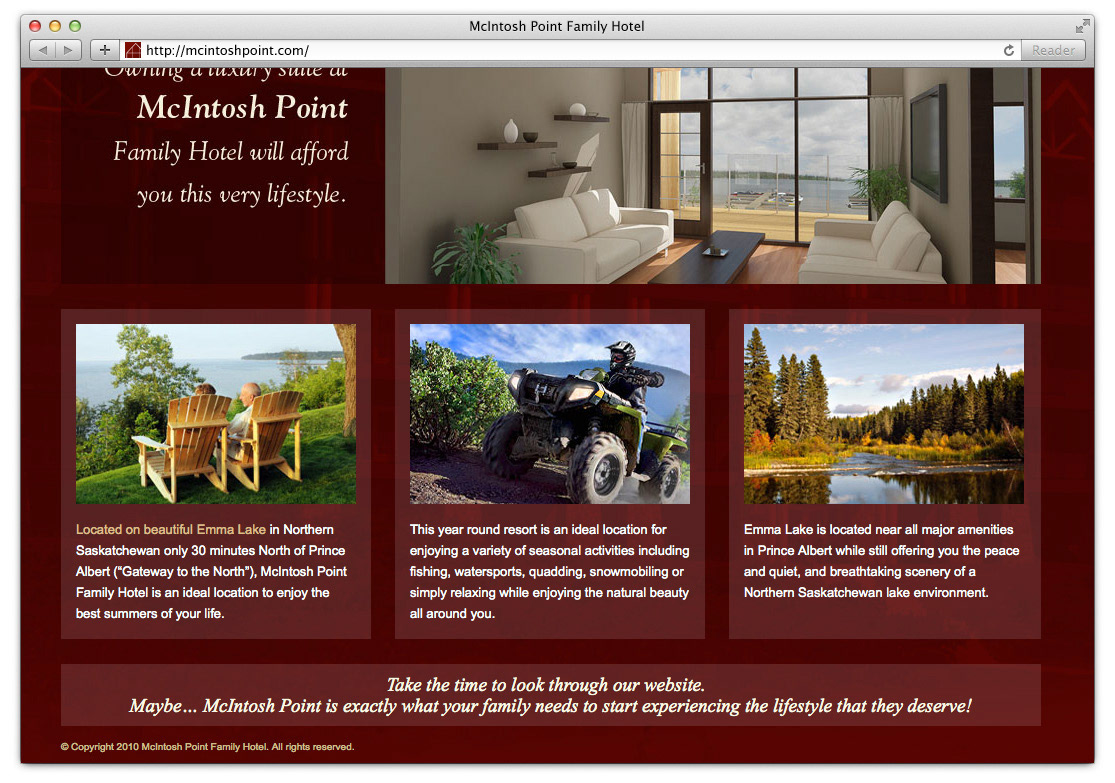 Branding and website for a proposed lakefront real estate development in Northern Saskatchewan.
